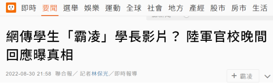 對此,台陸軍官校30日晚稱,視頻內容確實發生在校內學生宿舍浴室,經查是2020年10月間發生的事,這2天有人向校方舉報。台陸軍官校找來3人調查案情,確認是2名學弟與學長嬉戲打鬧,不是集體霸凌事件。校方還稱,經向當初學校帶學生的區幹部瞭解,當時3名學生一同在浴室洗澡、嬉戲,2名三年級的學生把四年級的學長壓在地上打屁股,“但3人確實在玩,不是霸凌”。校方稱,過去學生行為失當會給予記過處分,但因3人均已在2021年畢業並在部隊擔任官職,無法以校規懲處3人。