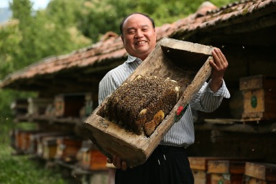 位於秦嶺大山的村莊裏,養“土蜂”對村民來説是普遍現象。挑選勻稱的木段,掏空內芯,抹上吸引野蜜蜂的黃蠟,一個老式“蜂箱”便由此誕生。到了蜂蜜成熟的時節,村民會燒一把艾草,煙熏火燎着把蜜蜂趕出“家門”,再握一把鏟子將“屋內房間”全部“摧毀”,便是取蜜了。
