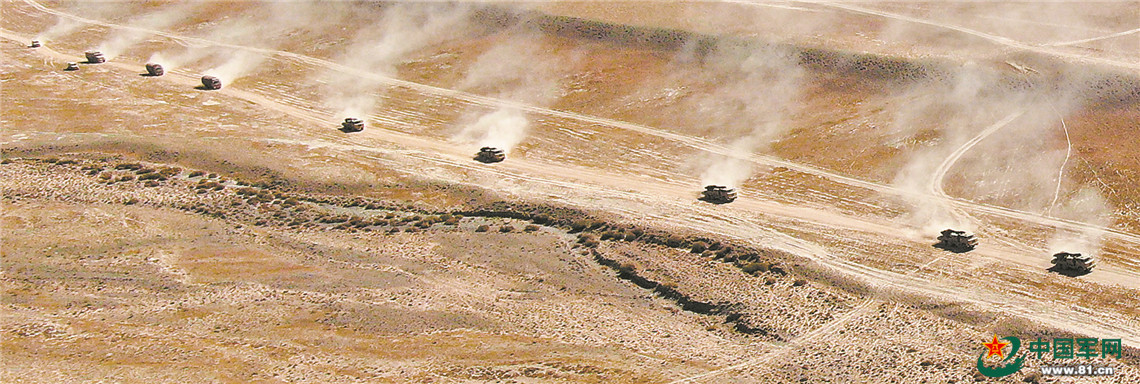 戈壁灘上,炮車向目標地域快速機動。