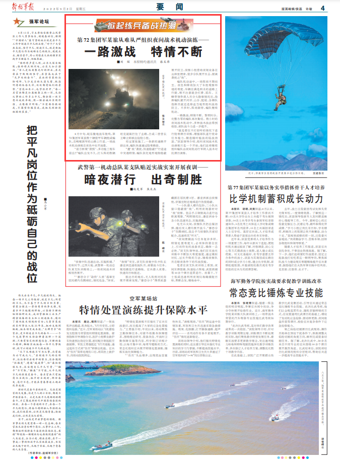 一路激戰,特情不斷。黎明時分,化整為零的編隊再次集結。數小時的夜間戰術機動中,多種戰術戰法得到檢驗,部隊戰鬥力進一步提升。