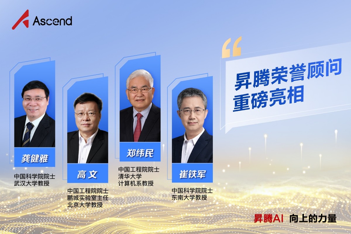 昇騰榮譽顧問是在人工智能等前沿科技領域有非凡影響力與卓越成就的院士專家。他們為昇騰AI產業的發展提供前瞻性的指導、諮詢與建議,是昇騰AI產業發展的核心牽引力量。會上,中國工程院院士、北京大學教授、鵬城實驗室主任高文,中國工程院院士、清華大學計算機系教授鄭緯民,中國科學院院士、武漢大學教授龔健雅,中國科學院院士、東南大學教授崔鐵軍被正式聘請為昇騰榮譽顧問,華為公司輪值董事長鬍厚崑現場頒發聘書。