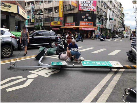 據聯合新聞網此前報道,“軒嵐諾”颱風來襲,2日上午11時40分,彰化員林市中山南路與南昌路口路口的信號燈杆疑被強風吹斷,砸中汽車和摩托車,其中騎乘摩托車的43歲陳女士在等紅燈時被砸倒在地,送往醫院急救。