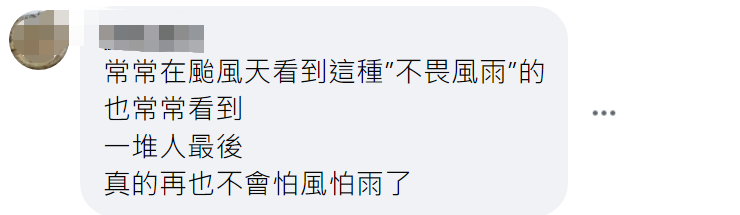也有網友説,常常在台風天看到這種“不畏風雨”的,也常常看到一堆人最後真的再也不會怕風怕雨了。↓