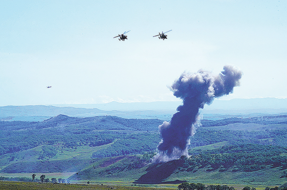 同時,俄機步部隊利用MT-LB多用途裝甲輸送車與T-80坦克部隊以及裝備各種火炮和多管火箭系統的部隊一起向模擬敵裝甲、車輛和特種裝備部隊的目標開火。為了防止敵人突破到側翼,對確定的目標進行持續火力打擊。最後“敵人”對防禦部隊使用了化學武器。俄軍“三防”部隊對人員、武器、設備進行了特種處理。同時,俄軍使用“旋風”多管火箭系統在庫頁島防禦期間打擊了“敵人”。