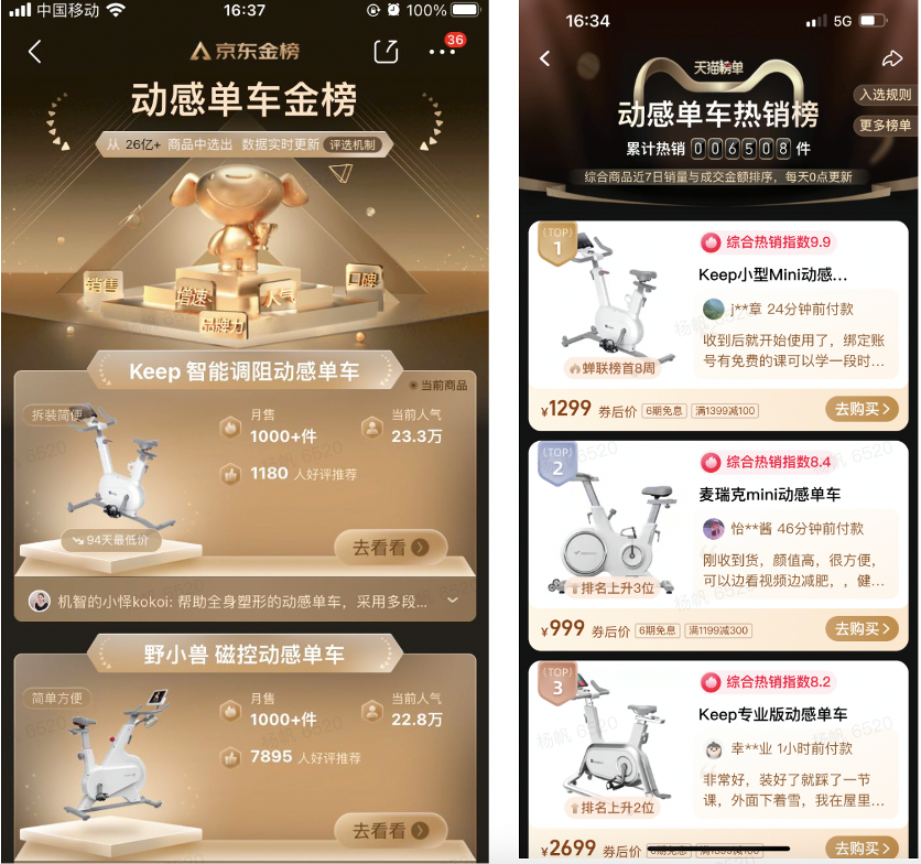 今年 8 月,Keep 運動研究院通過調研發現,對於單車用户而言“智能調阻”和“內容體驗”是他們最看重、也是對 Keep 單車最滿意的兩大功能。“Keep 單車的智能調阻,能夠實現線上監督激勵式訓練,而且外觀好看、騎行舒服,相對於機械單車調阻,很直觀,快捷方便。” “直播課的互動很有意思,被教練點名表揚是很驕傲的。在我家,我們都是真真實實在經常使用單車,完全沒有當成晾衣架。”用户在調研採訪中表示。