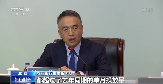 *農業銀行董**事長 谷澍:*7月份和8月份連續這兩個月農業銀行單月的信貸投放量都超過了去年同期的單月投放量。我們判斷這種信貸增長幅度的態勢,大概率是能夠延續的。