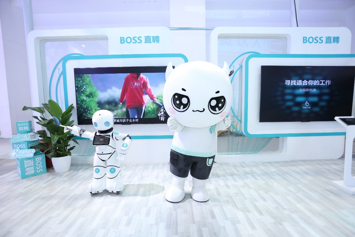 BOSS直聘展區展示了人崗智能匹配系統的數字屏、形象可愛的互動機器人、公司線下品控團隊“鐵壁”工作台等數智化產品及應用,吸引了眾多參會者駐足觀看、體驗。此外,BOSS直聘還通過“直播帶崗”新形式,現場開展網絡招聘服務。招商銀行信用卡中心、美團、聚盟科技等15家知名企業帶來一批優質崗位,助力應屆畢業生、在校生等求職人羣實現“數字雲求職”。