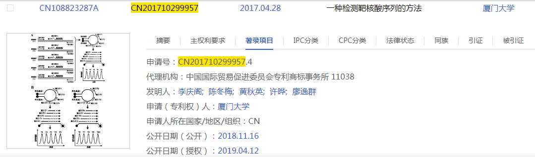 招股書還披露,2022年2月14日發行人與廈門大學簽署《技術轉讓(專利權)合同》,發行人以188萬元受讓廈門大學發明專利“一種檢測靶核酸序列的方法”的專利權。根據《國家知識產權局》檢索信息,此項專利的發明人除了包括李慶閣之外,還包括致善生物項目經理黃秋英、項目經理廖逸羣、監事會主席許曄等,也即此項專利的發明人多為致善生物的員工。