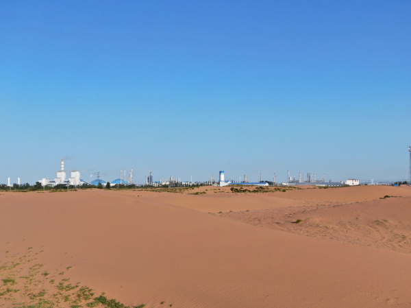 9月初的鄂爾多斯杭錦旗,太陽剛剛升起,沙漠盒馬村已經開始工作。