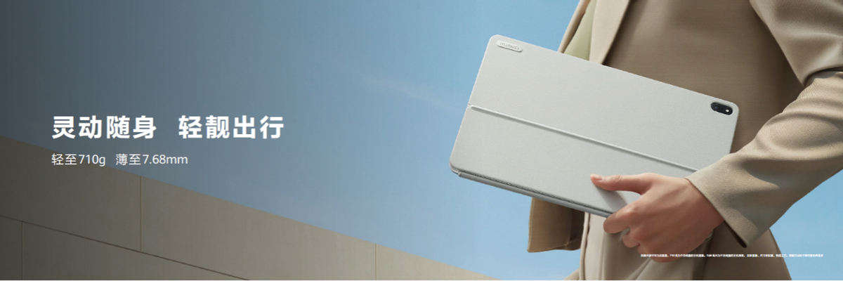 而今年發佈的新品華為MateBook E Go在外觀上採用創新的ID與架構設計,針對產品不同部位,採用不同樣式但同樣輕巧而纖薄的材質,以減輕機身的厚度和重量。在電池後蓋部分,採用玻纖材質,重量輕且強度高。而中框部分,則選用鋁合金材質作為骨架,質地輕盈且堅固耐用。最終讓機身輕至710g,最薄處僅7.68mm,在二合一筆記本品類中也屬於更輕薄的產品。