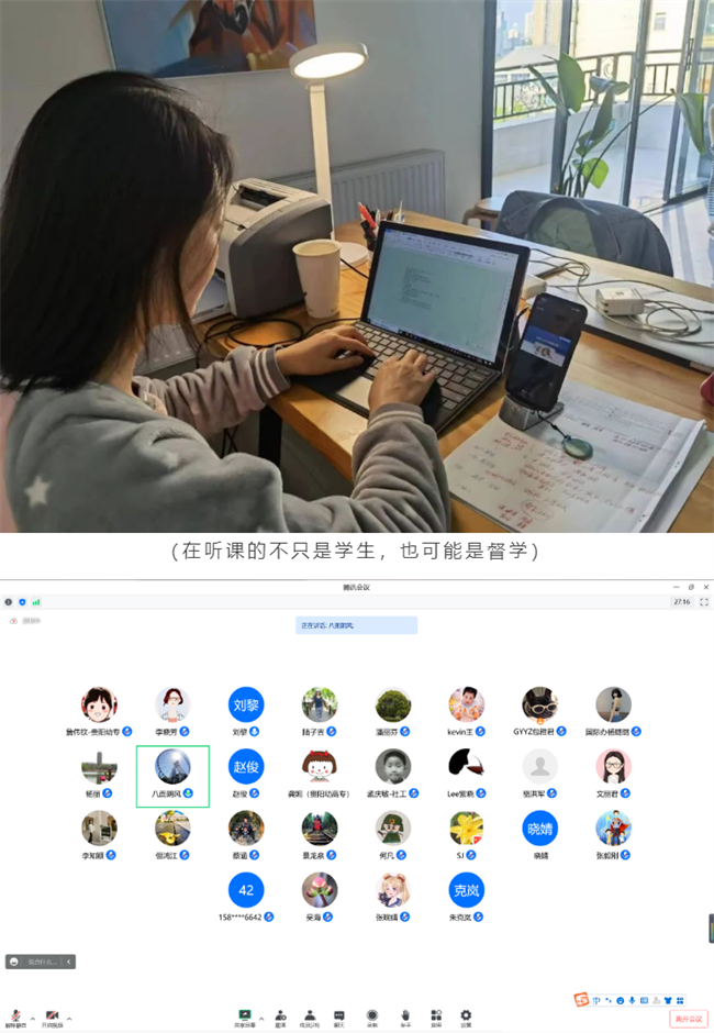 為了“雲端”相聚,老師們提前精心準備課程,設計課堂活動、提高學生網課積極性;同學們精神飽滿,與老師積極互動,線上教學秩序井然;教學督導在線督導、巡課,觀看教師在線授課實況,瞭解學生在線學習情況,為保證教學質量保駕護航。