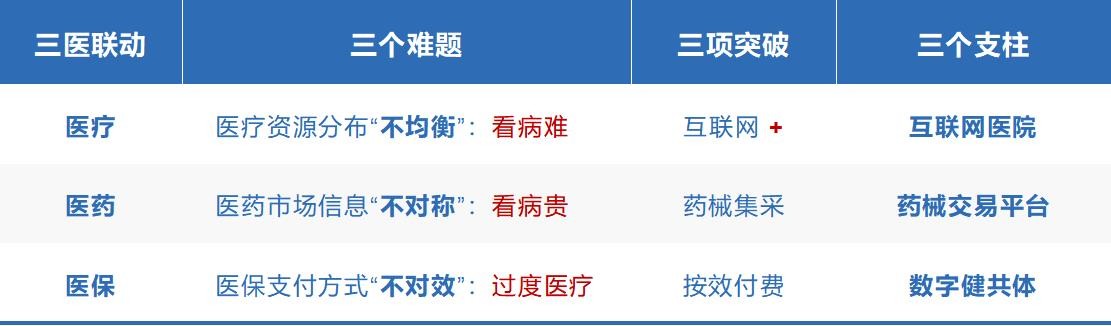 “以互聯網醫院為載體的在線問診、遠程醫療等,緩解了醫療資源分佈不均衡的難題;由藥械交易平台支撐的藥械集中採購,破除了‘虛高’的藥械價格;而數字健共體則響應和推進醫保支付方式改革,將醫療健康服務轉換到‘按效付費’的軌道上來。而天津市基層數字健共體成為微醫融合互聯網醫院、藥械交易平台和數字健共體三項創新,同時破解看病難、看病貴和過度醫療等醫療體系頑疾的綜合解決方案。”