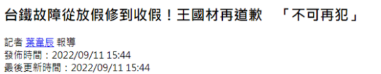 台鐵故障從放假修到假期結束!台“交通部長”道歉,網友不買賬