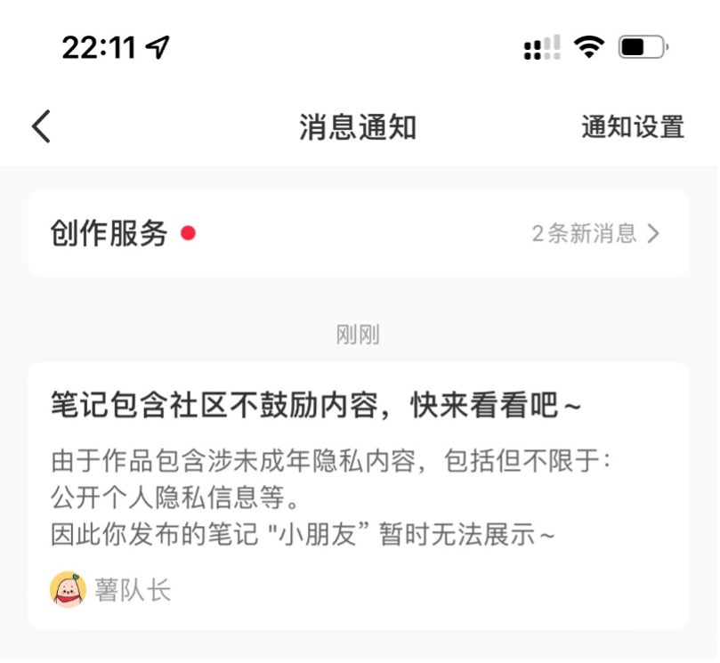 針對創作者無意中發佈包含未成年人隱私的內容,小紅書治理團隊對算法模型進行了升級,在檢測到發佈的內容中包含兒童隱私部位照片、身份證號、手機號等隱私信息時,平台會向用户發送站內信提示風險,並建議修改或撤回。