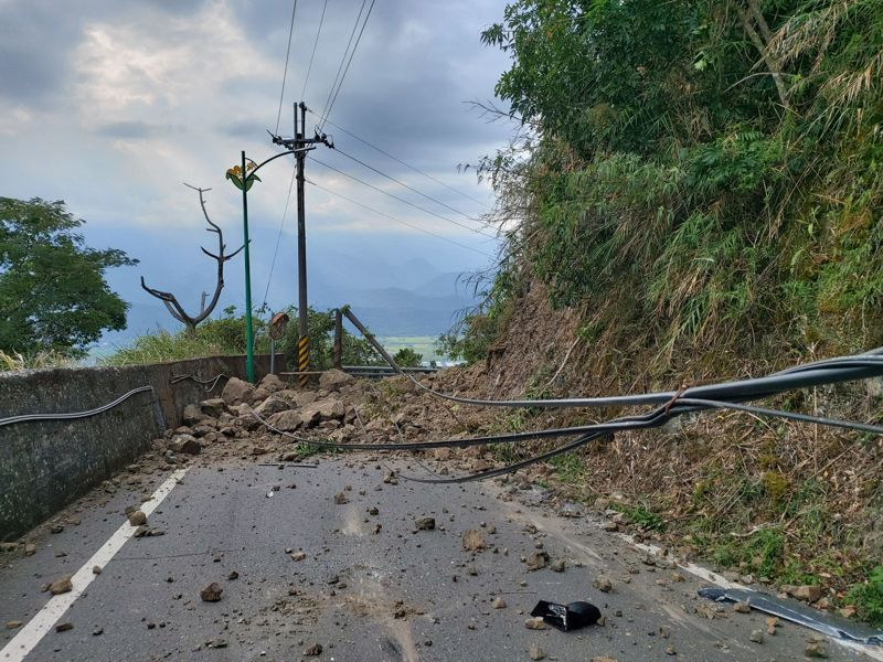 報道稱,根據現場照片,落石自山坡崩落,導致大面積道路無法通行,且有電線杆攔腰折斷,電線被扯落。
