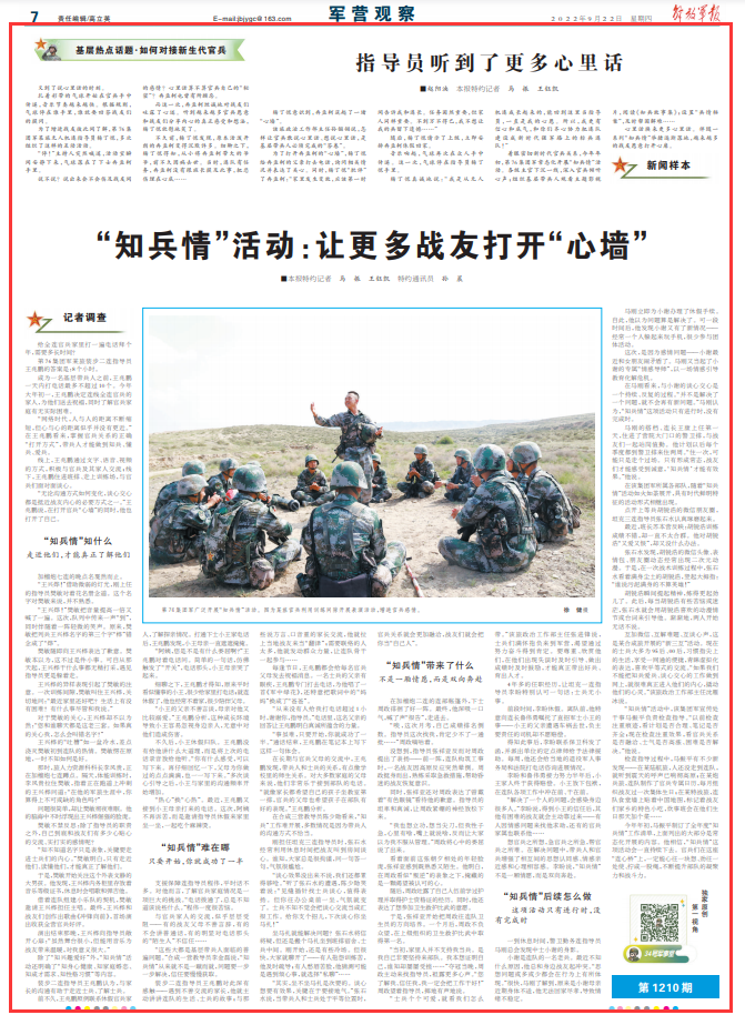 心裏話換來更多心裏話。伴隨一系列“知兵情”舉措逐漸落地,越來越多的戰友願意打開心扉。
