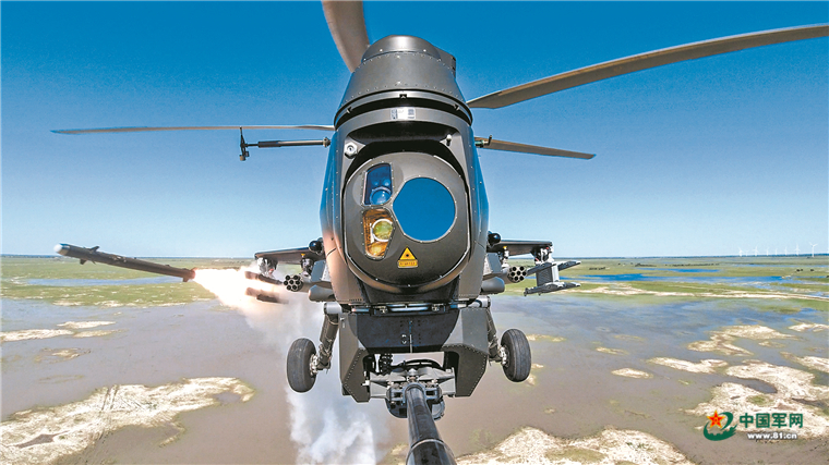 遼闊的草原上空,飛行員駕駛滿載彈藥的武裝直升機靈活機動,低空隱蔽向目標空域突防。“發現目標!”飛行員迅速調整飛行姿態、建立攻擊航線。接到發射指令後,導彈如利劍出鞘,直刺目標。