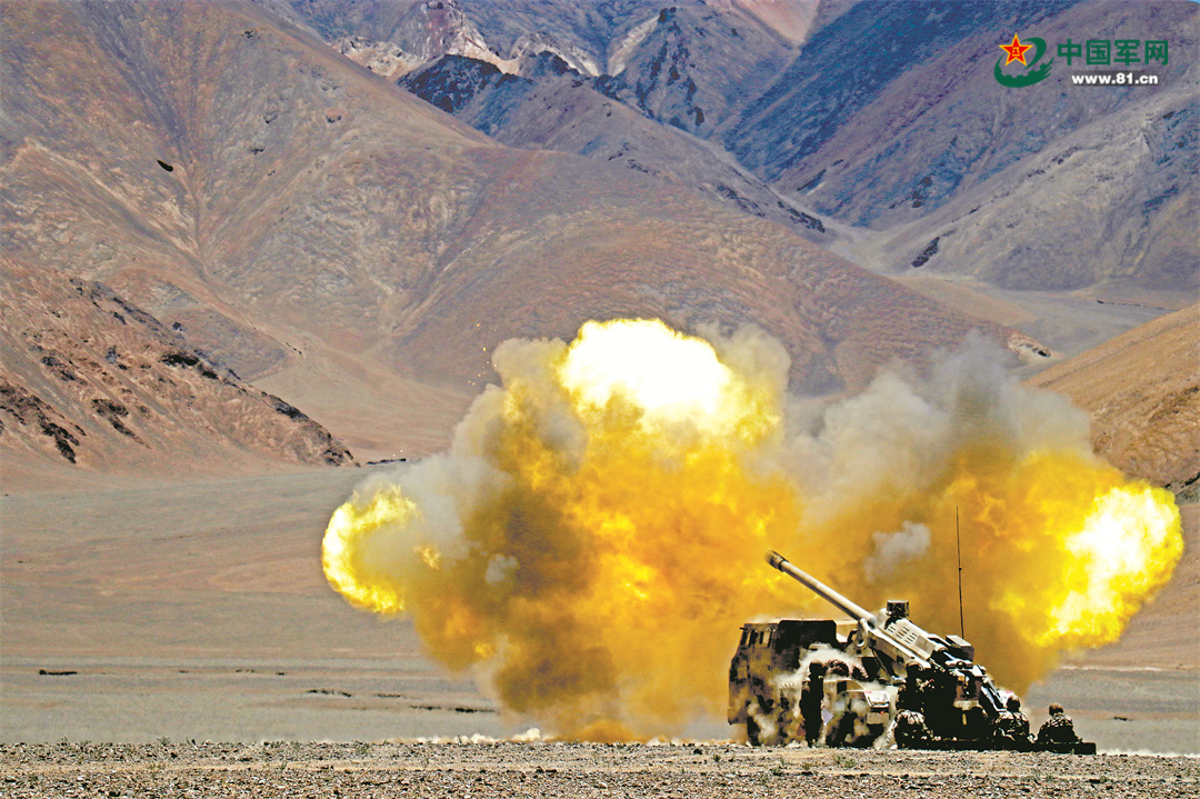 “放!”指揮員下達射擊口令。陣陣轟鳴中,炮彈精準命中目標。隨後,各炮班完成對殘存目標的打擊。