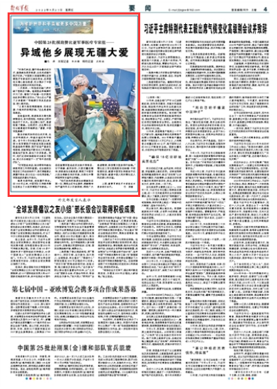 “他們始終把患者生命健康放在第一位,展現出的專業素養、奉獻精神和嚴謹作風令人印象深刻,得到廣大患者讚賞,深受贊方醫務同行欽佩。”贊比亞三軍總醫院院長伯納德·卡帕塔莫約説,感謝中國軍隊持續給予的醫療援助,感謝中國人民對贊比亞人民的愛心和友誼。