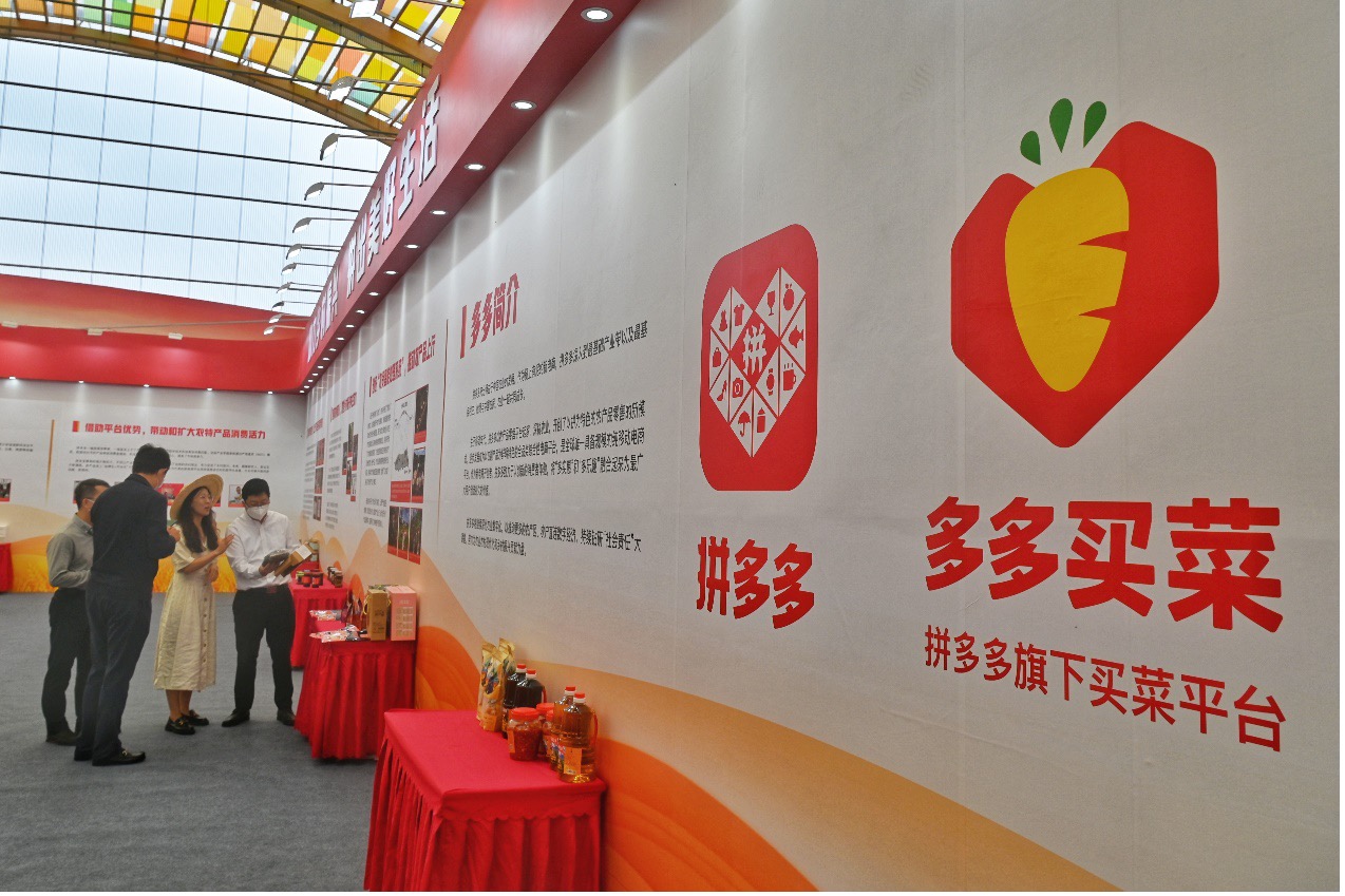 作為依靠農產品起家、紮根三農的新電商,拼多多以“助力鄉村振興,拼出美好生活”為主題的特裝展位亮相成都主場館核心區,來自貴州長順、江西龍南、河南洛寧、河南汝陽、四川南充的農人代表推介家鄉好貨。