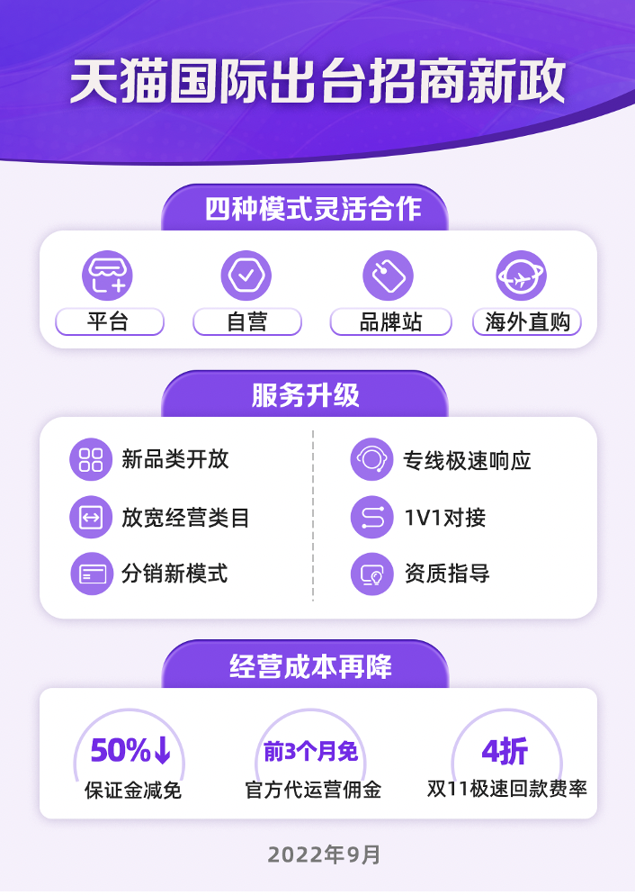 【環球網科技綜合報道】9月23日消息,天貓國際今日公佈最新進口招商新政,從入駐模式、入駐規則與服務、經營、新品牌孵化等方面,支持跨境商家更好地拓展國內市場、發展生意。