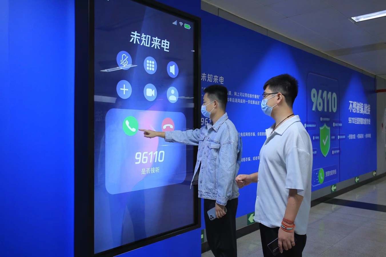 除了新穎的線上反詐宣傳,北京地鐵也同步上線了反詐專列、地鐵廣告、創意反詐展、反詐互動裝置,聚合化、視覺化呈現反詐經驗、典型詐騙套路及反詐利器,實現沉浸式反詐宣傳。落地北京王府井站的反詐互動裝置通過讓公眾現場體驗接聽96110的場景,以更為貼近用户的視角進行反詐宣傳;反詐專列通過篩選整合微信安全中心、QQ安全中心等渠道徵集的3000多名網友的反詐故事和經驗教訓,幫助公眾識別詐騙;反詐藝術展則通過6幅反詐主題畫,藝術化呈現生活中存在的電信網絡詐騙,激發公眾反詐意識。