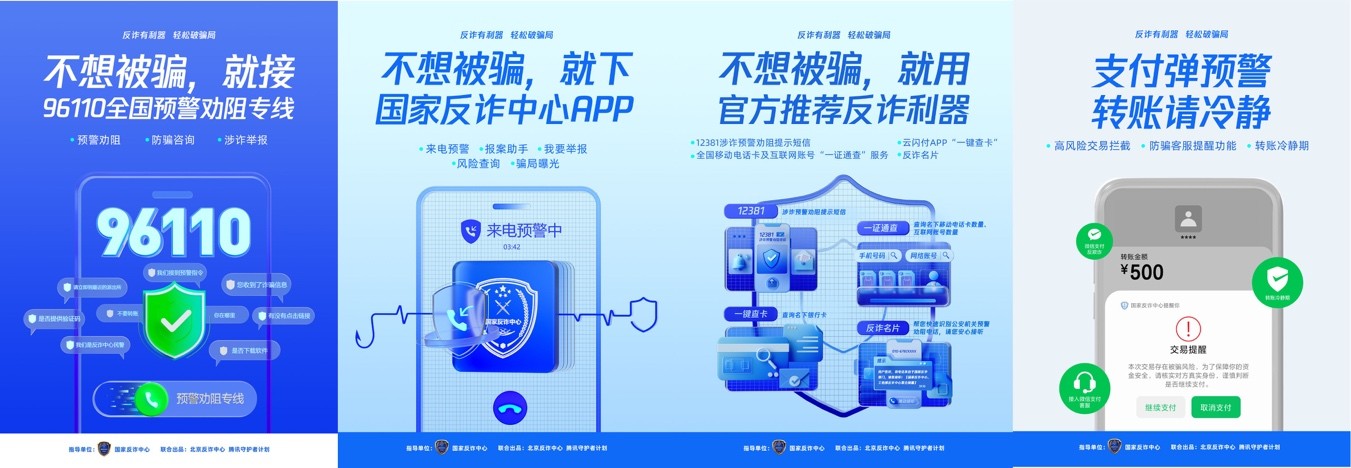 在國家反詐中心的指導下,騰訊公司啓動了以“反詐有利器,輕鬆破騙局”為主題的系列反詐宣傳活動。通過反詐利器、反詐宣傳片、反詐趣味答題、創意反詐展及互動裝置等豐富的線上線下宣傳模式,共同探討電信網絡詐騙社會共治議題,立體化宣傳普及電信網絡詐騙防範知識,提升社會公眾的防騙意識,激發全社會共同參與到反詐行動中。