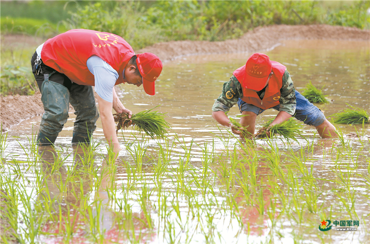 十堰市竹山縣退役軍人志願者幫當地農民插秧。朱本雙攝