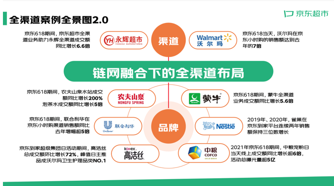 去年11月,京東超市相繼發佈“全渠道能力全景圖”和“全渠道十大能力模塊”。京東此次發佈“全渠道案例全景圖2.0版”,則是向外界全面展示京東超市全渠道模式正在幫助更多品牌實現增長。