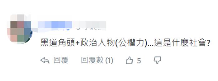 也有網友問:“黑道角頭+政治人物(公權力)……這是什麼社會?”↓