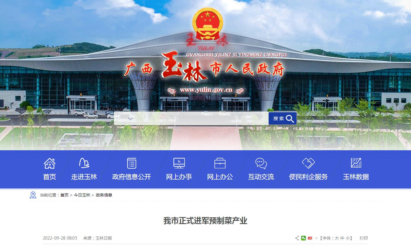 【環球網財經消費綜合報道】據廣西玉林市人民政府信息公開平台披露,玉林市政府在近日召開的2022中國-東盟預製菜產業發展大會上完成六個項目的簽約,深度扶持預製菜產業發展。