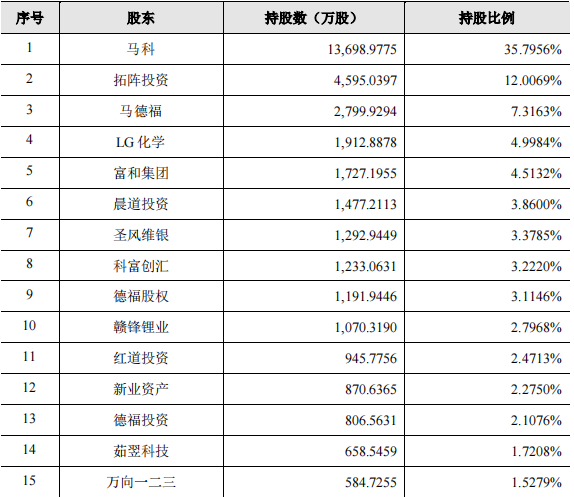 從招股書披露的股東名單中,更是能看到LG化學、寧德時代、贛鋒鋰業、萬向一二三、盛屯礦業等業內龍頭的身影,分別位列第四、第六、第十、第十五、第十九大股東,可謂是創下了國內銅箔行業的先例。其中,寧德時代是通過晨道投資間接參與德福科技戰略投資的。