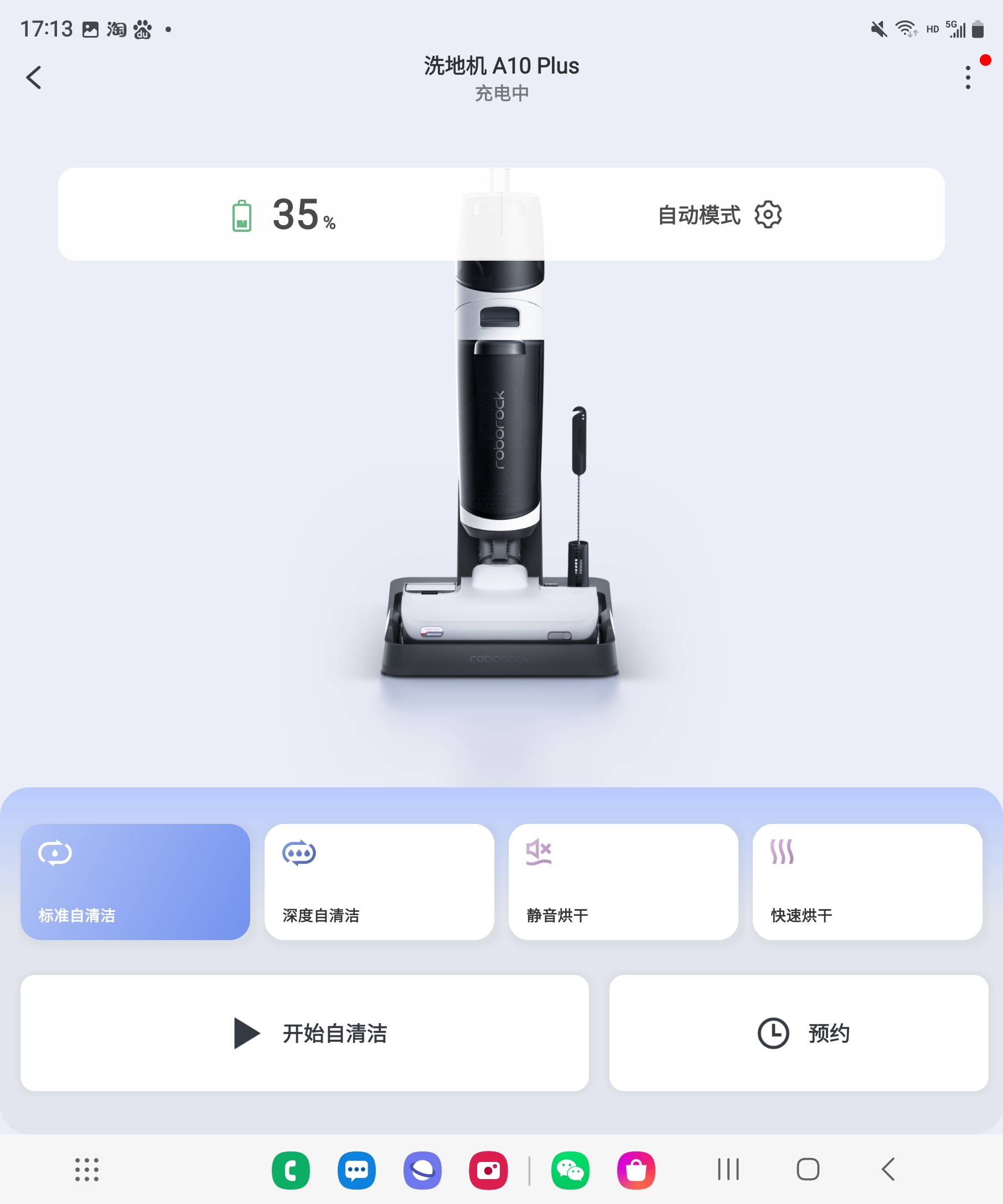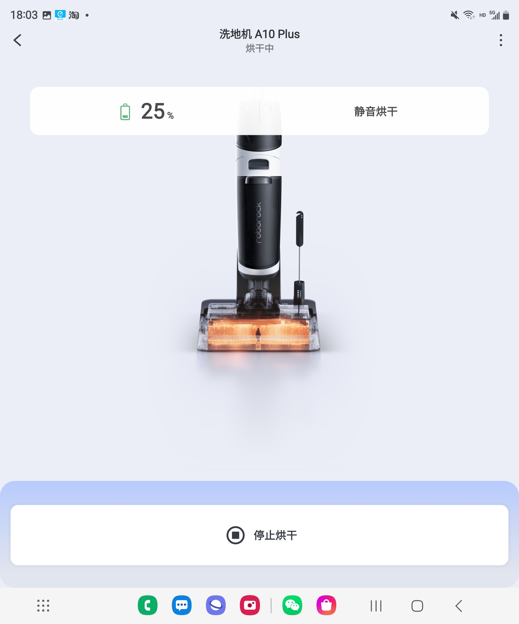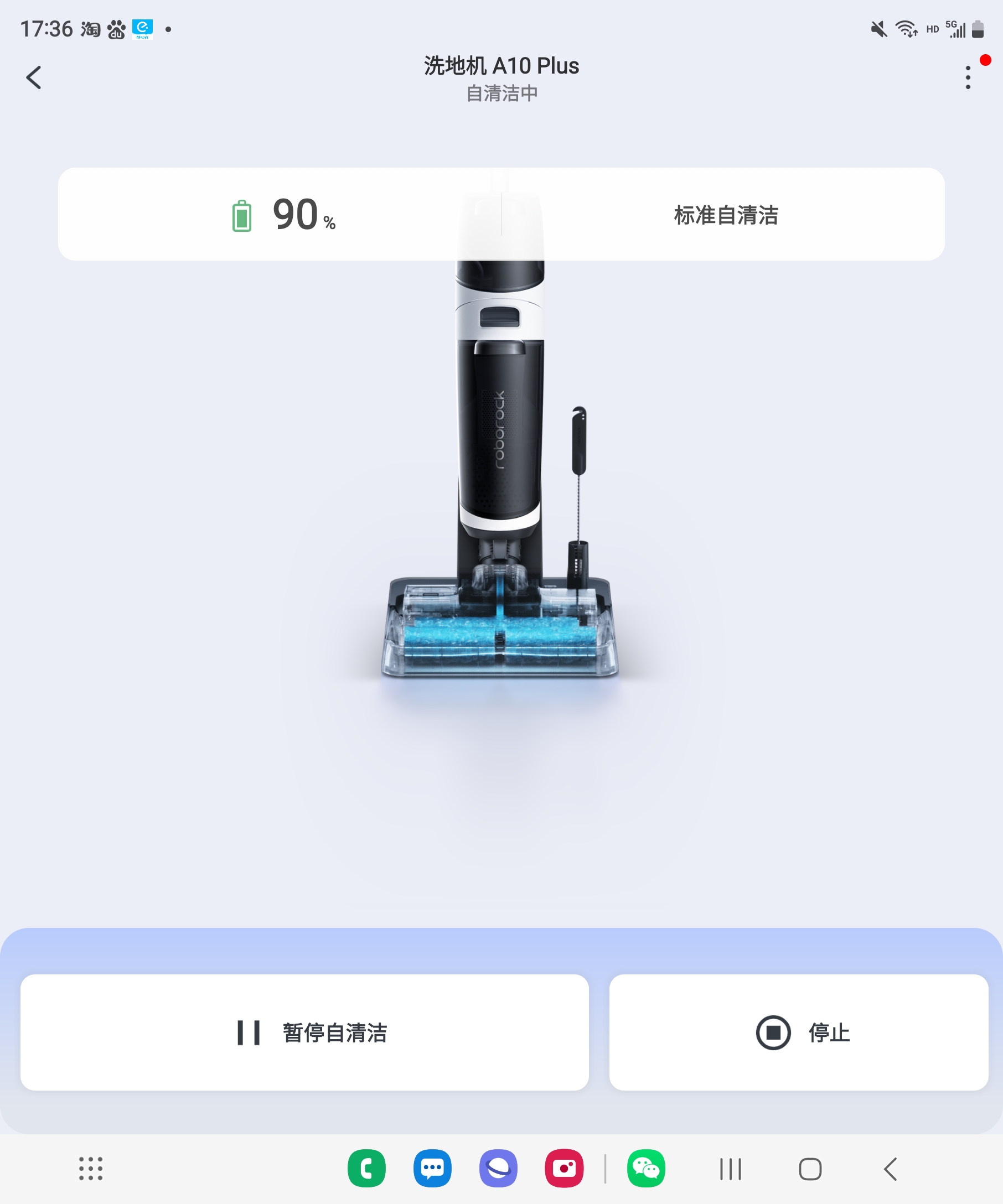 App適配方面,通過下載“Roborock”,可以進行與洗地機的連接。第一次連接的時候,只需按照界面提示進行連接即可,整個操作過程簡潔明瞭。成功連接後,就可以通過App對洗地機進行一些操作。可以遠程進行對洗地機的一些簡單操作,如烘乾、自清潔等。