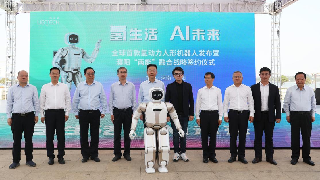 9月28日,氫生活、AI未來——全球首款氫動力人形機器人發佈暨濮陽“兩能”融合戰略簽約儀式在濮陽舉行。在全球首款氫動力人形機器人“一行”發佈的同時,濮陽與優必選科技就人工智能與氫能“兩能”融合達成戰略合作,積極探索和實施以人工智能驅動新能源發展戰略,助力實現我國“碳達峯、碳中和”的目標,推動經濟綠色高質量發展。