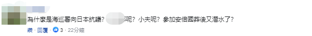 更有人質疑,“為什麼是‘海巡署’向日本抗議?外事部門呢?小夫(指民進黨當局‘駐日代表‘)呢?參加安倍國葬後又潛水了?” ↓