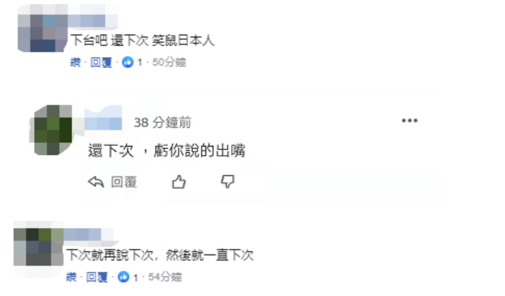 不過,對於台“海巡署”的説法,一些島內網友並不買賬,有人直言,“下台吧,還下次。”“還下次,虧你説得出口。”“下次就再説下次,然後就一直下次。” ↓