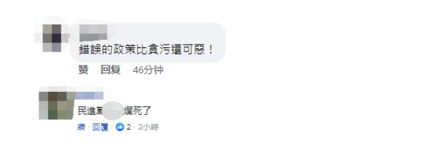 對於這個消息,有島內網友批評稱,“錯誤的政策比貪污還可惡!”“民進黨執政爛死了。”
