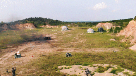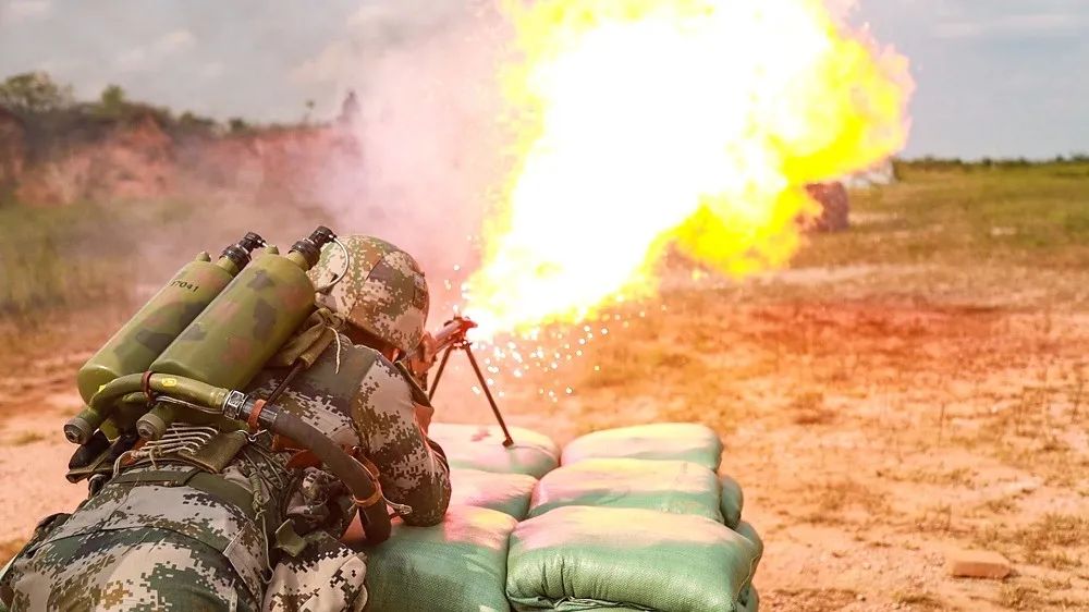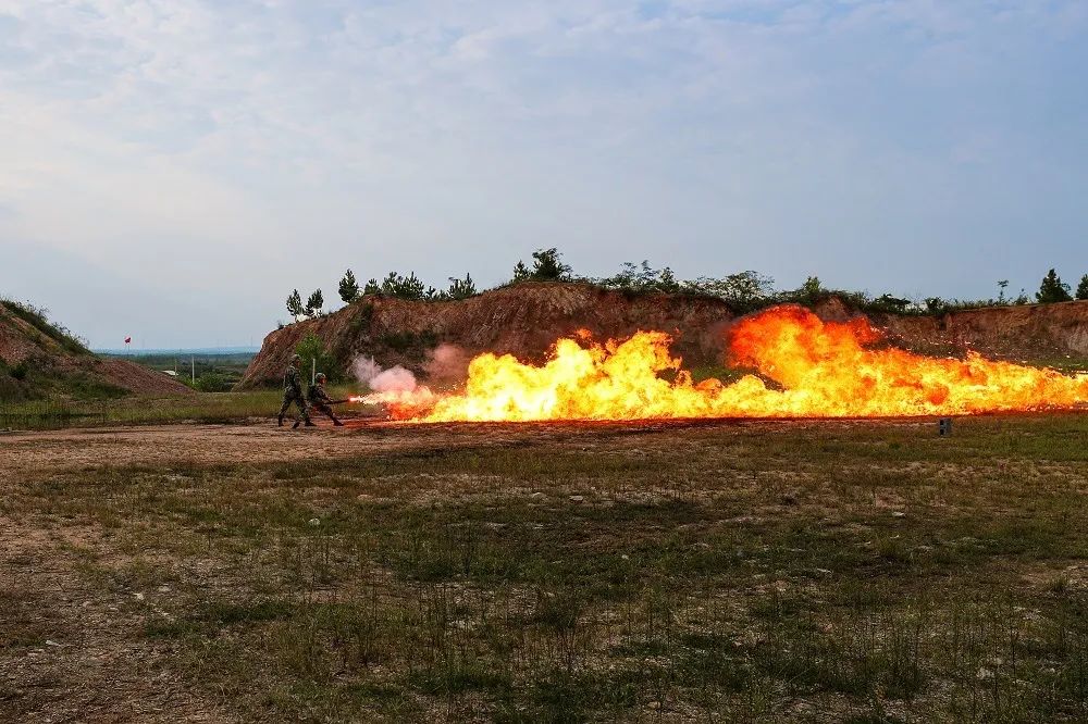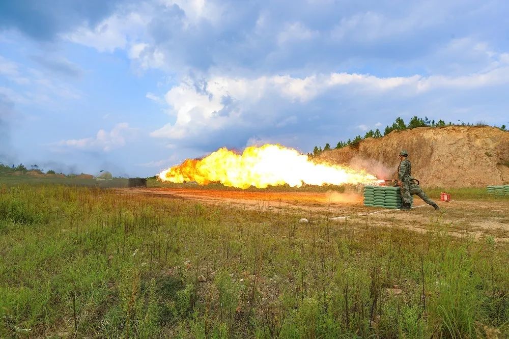 遠處的“敵碉堡”瞬間被火焰吞噬