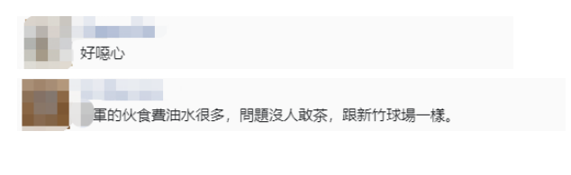 聽聞這一消息,有島內網友表示,“好惡心”;“台軍的伙食費油水很多,問題沒人敢查……”↓