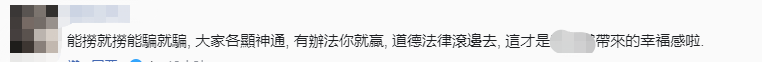 還有人諷刺,“能撈就撈能騙就騙,大家各顯神通,有辦法你就贏,道德法律滾邊去,這才是民進黨帶來的幸福感啦。” ↓