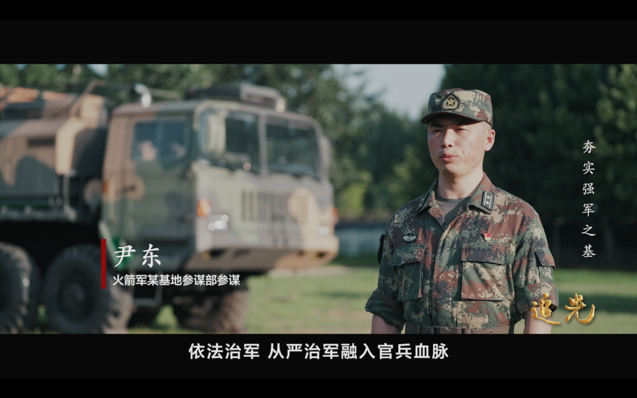 火箭軍某基地參謀尹東説:我們執掌的是“殺手鐧”武器,一定要讓依法治軍、從嚴治軍融入官兵血脈,確保每一個口令、每一個動作都符合戰標要求,這樣才能更好地履行使命。