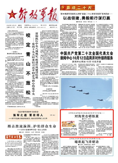 海面上,戰機組成編隊飛行。馮晨緊盯儀表,在茫茫大海上搜索目標。發現目標後,他駕駛戰機俯衝而下,進入攻擊航線,抓住時機順利完成對“敵”攻擊。