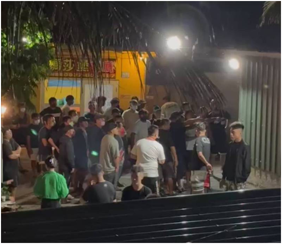 據中時新聞網報道 ,蘭嶼8日發生一起嚴重聚眾衝突事件,施姓遊客因不明原因,8日下午在環島公路上亮刀任意攔車,島上一對夫妻不明就裏地被攔下,結果男方被施姓男子打頭。“這種事情怎麼可以在蘭嶼發生”,報道稱,消息傳遍蘭嶼全島,各村近百名年輕人聚集,找到施姓男子住宿的民宿,要替那對夫妻討公道,結果發生衝突,上百人打成一團。