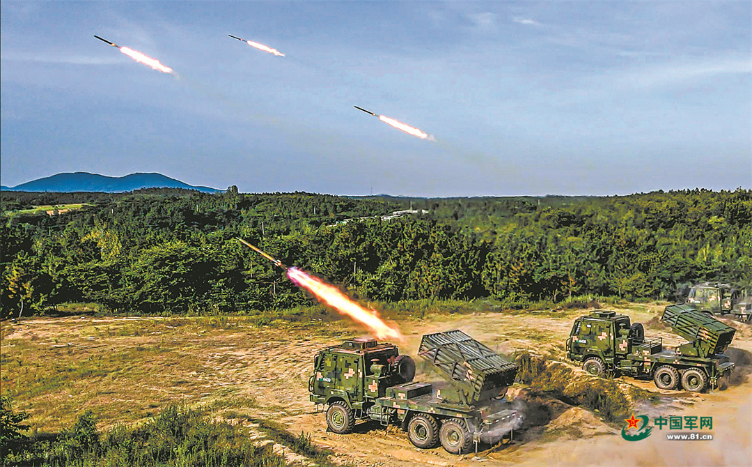 火箭彈呼嘯而出,撲向“敵”陣地。