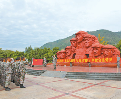 全軍部隊深入開展“學習踐行強軍目標、做新一代革命軍人”“維護核心、聽從指揮”“傳承紅色基因、擔當強軍重任”等主題教育,聚焦“忠誠維護核心、矢志奮鬥強軍”深化主題教育,着力鑄牢聽黨指揮、奮鬥強軍的思想政治根基。圖為戰略支援部隊某部在四川省冕寧縣紅軍廣場重温入黨誓詞。