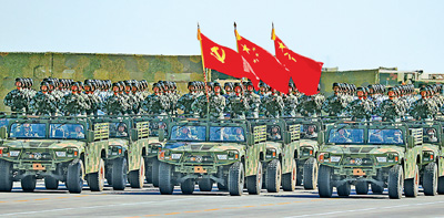 2013年3月,習主席在出席十二屆全國人大一次會議解放軍代表團全體會議時,明確提出黨在新形勢下的強軍目標。2017年10月,習主席在黨的十九大上明確黨在新時代的強軍目標是建設一支聽黨指揮、能打勝仗、作風優良的人民軍隊,把人民軍隊建設成為世界一流軍隊。全軍牢記強軍目標,深入推進政治建軍、改革強軍、科技強軍、人才強軍、依法治軍,全面加強練兵備戰,堅決履行新時代使命任務,在中國特色強軍之路上邁出堅實步伐。圖為2017年7月30日上午,慶祝中國人民解放軍建軍90週年閲兵在朱日和聯合訓練基地隆重舉行,這是護旗方隊接受檢閲。