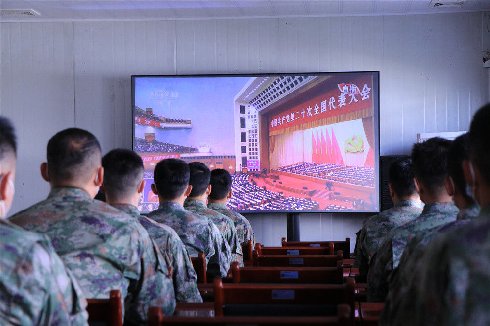 南部戰區海軍某守備部隊官兵集合在會議室,認真收看黨的二十大開幕並交流體會。在祖國西陲阿爾泰山腹地,新疆軍區紅山嘴邊防連官兵收看黨的二十大開幕後,立即展開討論。官兵們説:“身後是祖國和人民,我們一定要忠誠履行衞國戍邊職責,深入推進實戰化軍事訓練,以過硬軍事能力築牢邊疆安全穩定屏障,努力為黨和人民再立新功。”
