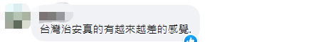 還有人稱,“台灣治安真的有越來越差的感覺。” ↓