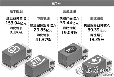 深度科技研究院院長張孝榮在接受《證券日報》記者採訪時表示:“受旺季農產品上市、電商節假日促銷增多、部分區域物流恢復正常、跨境快遞規模增長明顯等因素推動,9月份快遞企業呈現量價環比回升。”