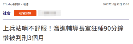 台媒:台軍士兵夜間執勤期間擅自跑去睡覺90分鐘,被判刑3個月